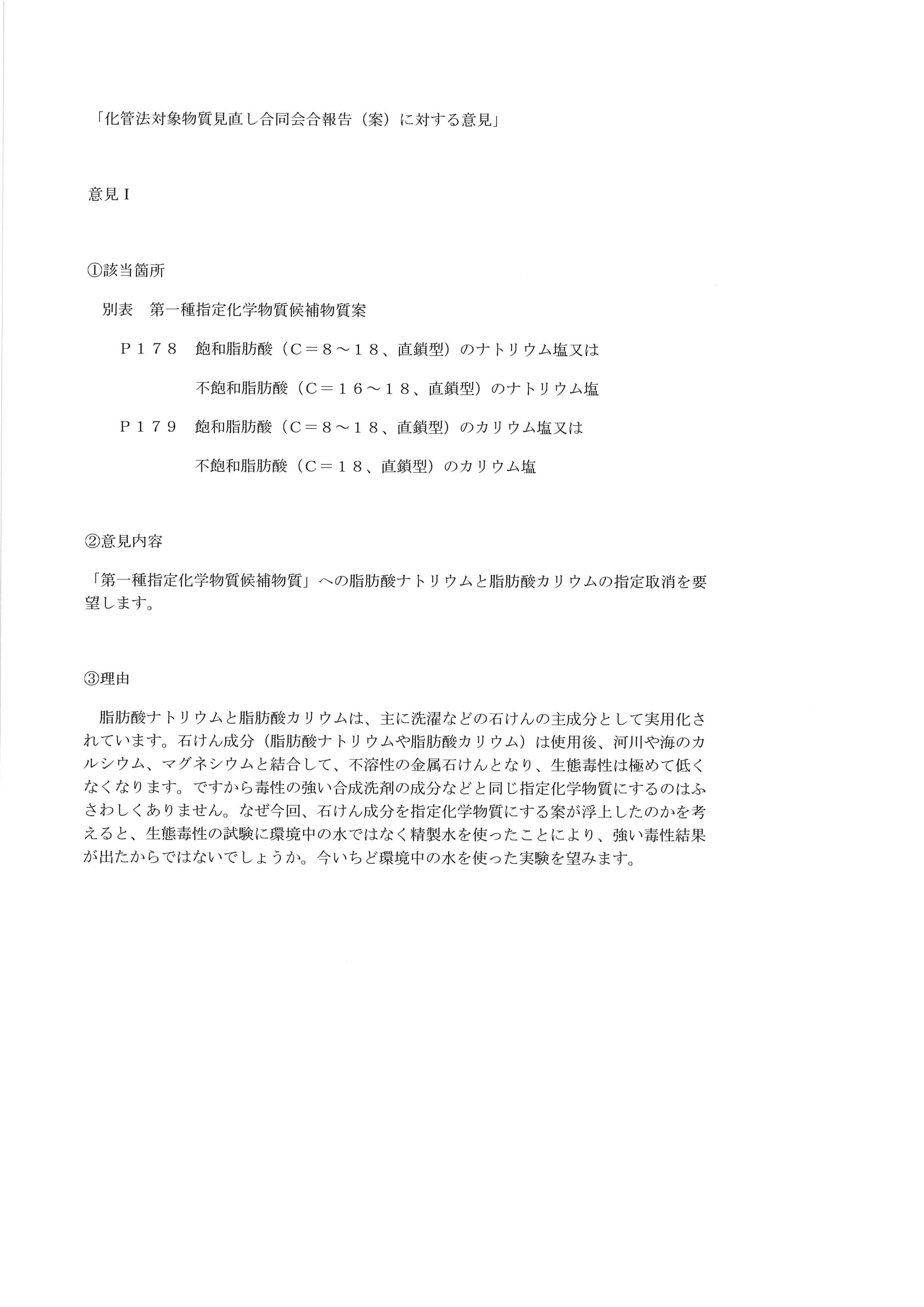 「石けんを指定化学物質にするのはおかしい」の一言でも結構ですので、ぜひ環境省にお送りください。